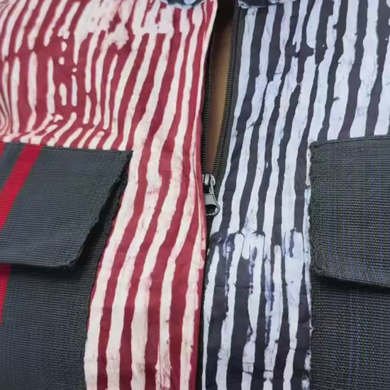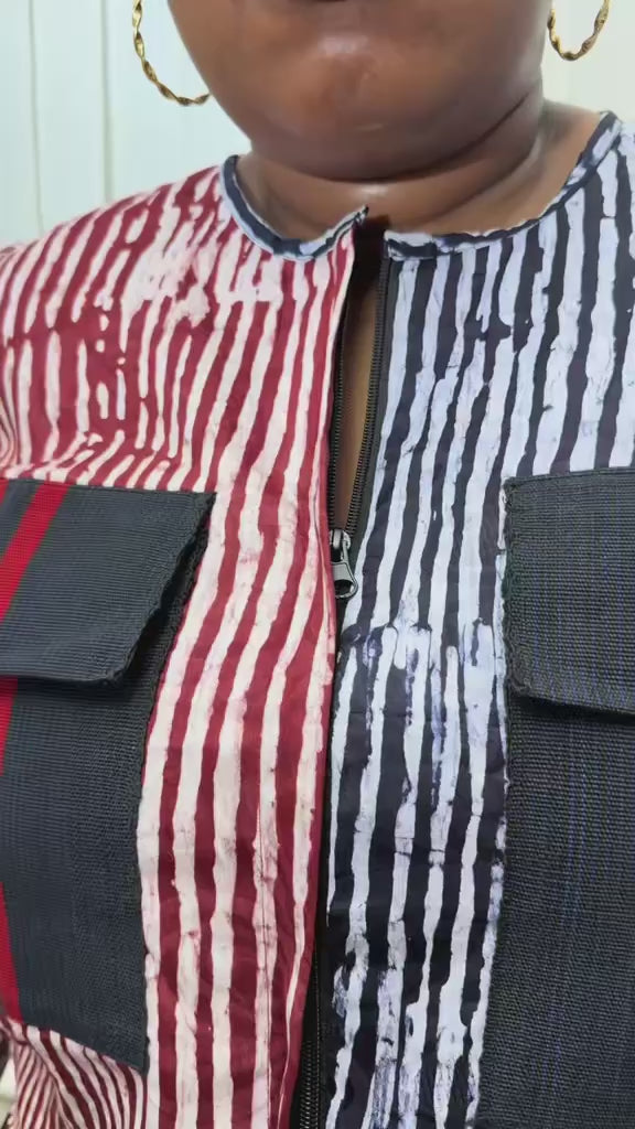 The mixed Cotten hand dyed brocade joined with the cotton twill chino wide leg pants creates rhythmic sparkle.